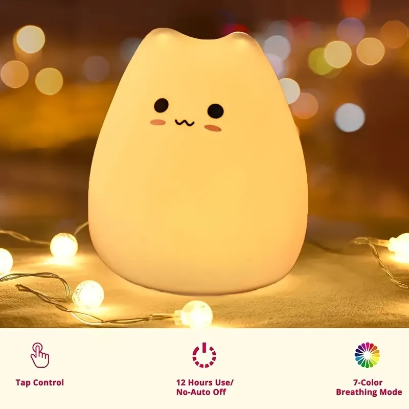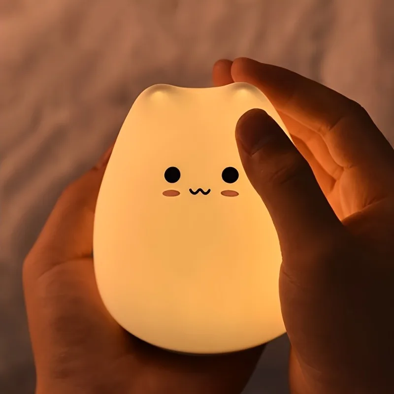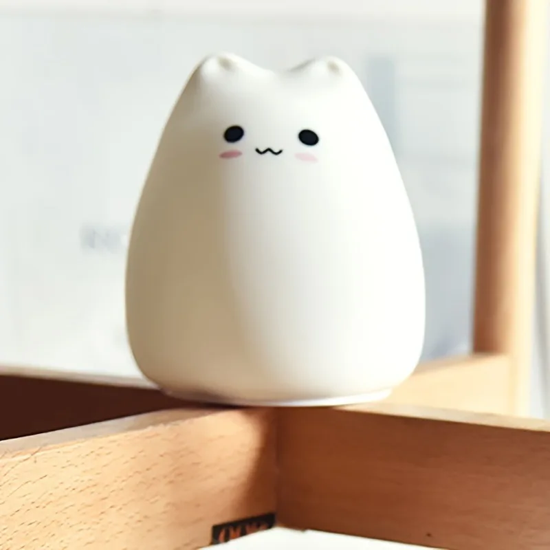 Imagina chegar no fim do dia, apagar as luzes e ver esse gatinho brilhando no seu quarto, mudando de cor e trazendo uma vibe tão boa que até os problemas tiram uma soneca… É como ter um mini feitiço de boas energias! ✨